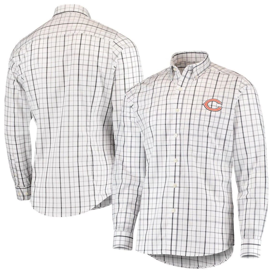 Antigua Men's White/Navy Chicago Bears Keen Long Sleeve Button-Down Shirt