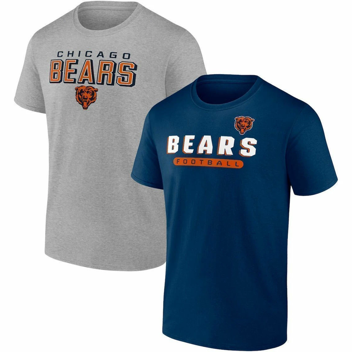 - Ensure you’re properly geared up for football season with this Chicago Bears T-shirt combo pack from Fanatics Branded. This set includes two different tees with bold Chicago Bears designs so you can have a diverse wardrobe for supporting your favorite team in the league. The soft material is perfect for staying comfortable in any casual setting.