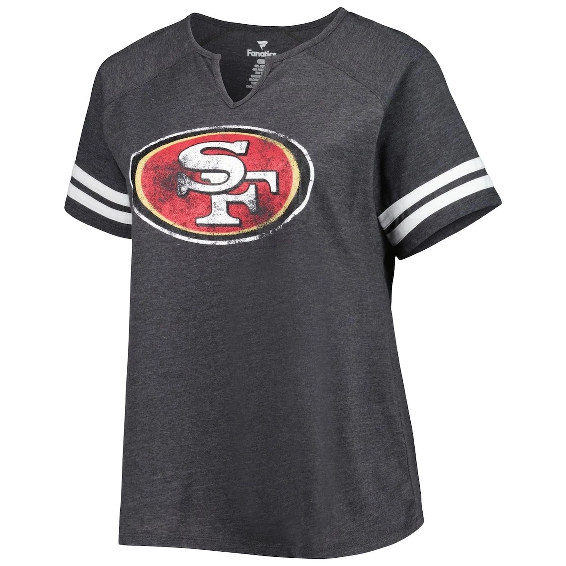 Fanatics Branded Women's Heather Charcoal San Francisco 49ers Plus Size Logo Striped Raglan Notch Neck T-Shirt