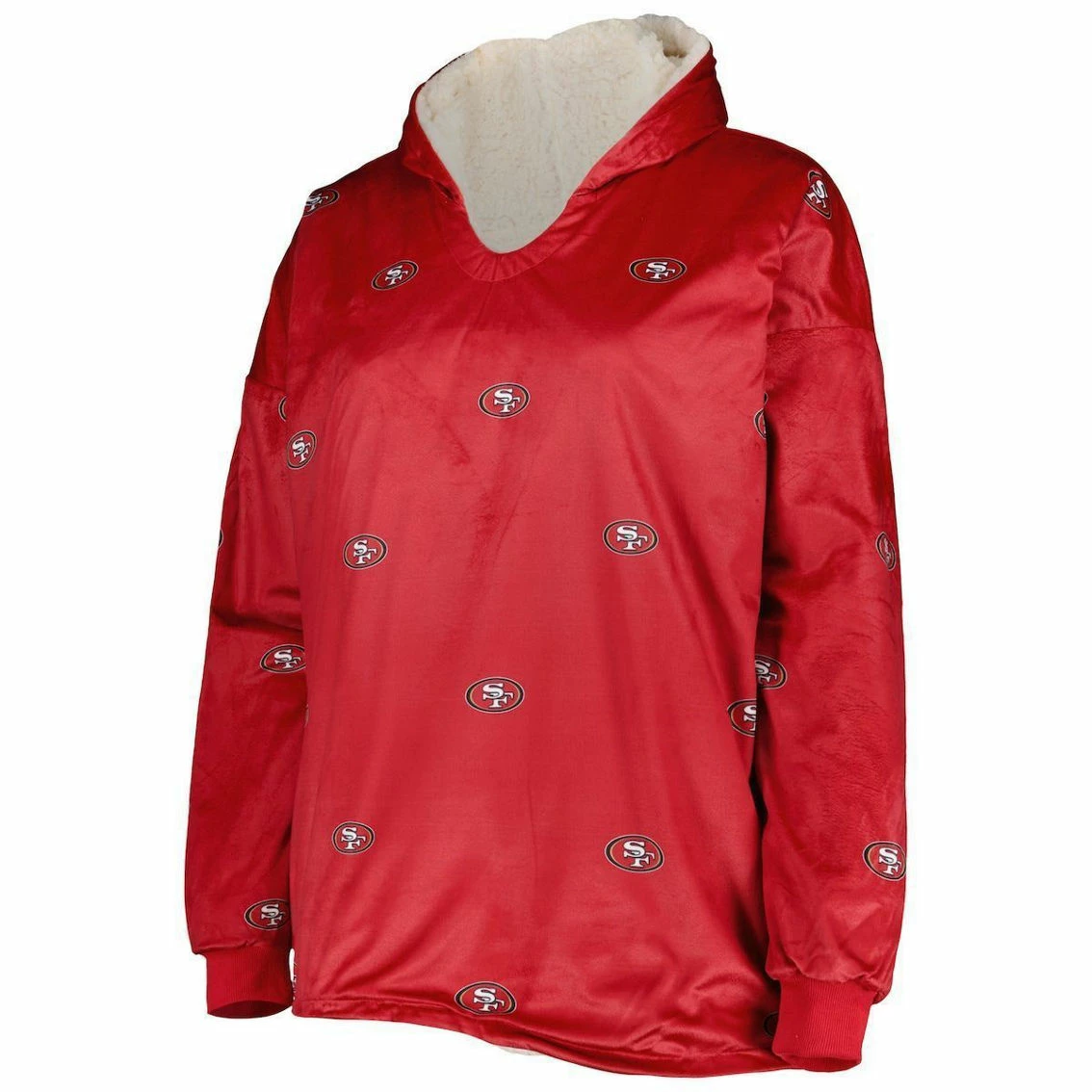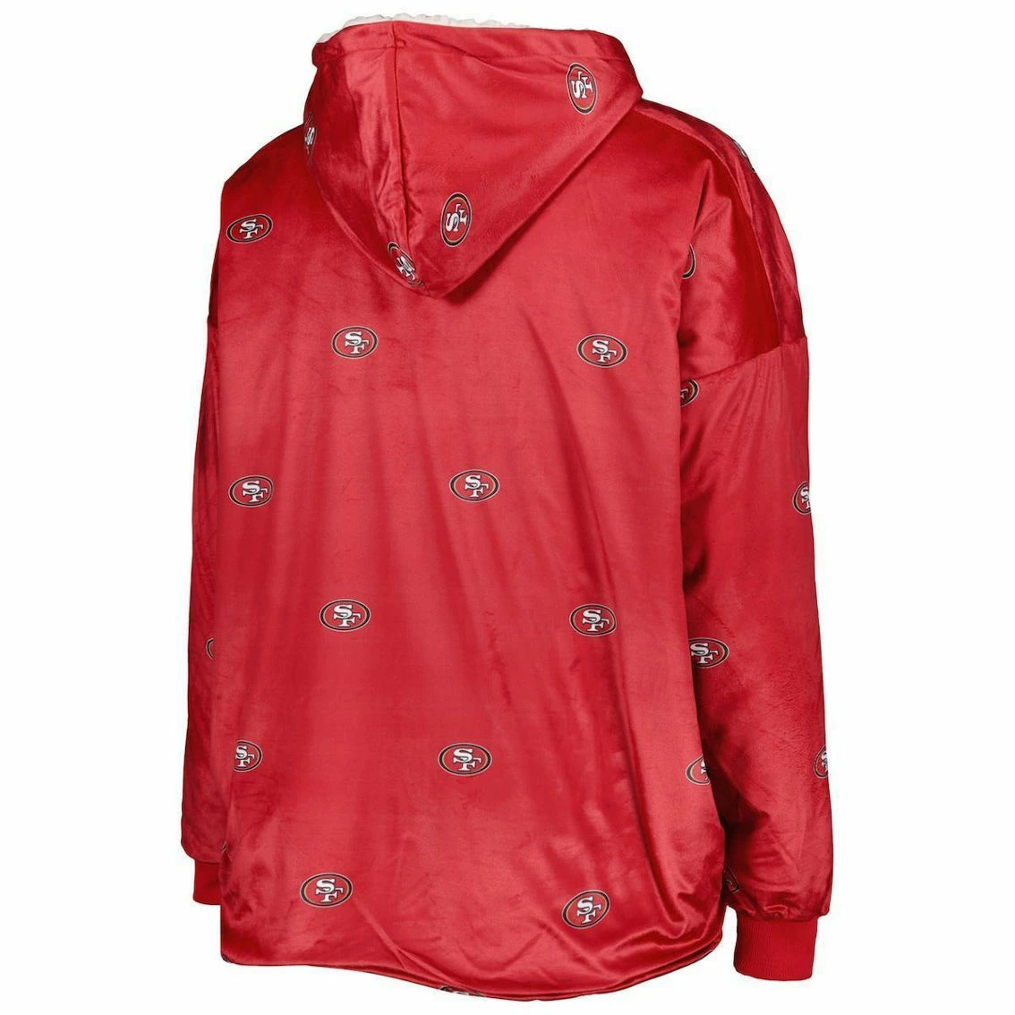 - Take comfort to the next level with this San Francisco 49ers Repeat Print hoodeez from FOCO. This oversized reversible hoodie features a bold allover design on one side and a prominent logo on the other. Stay warm and cozy during the next San Francisco 49ers game with the soft Sherpa lining.