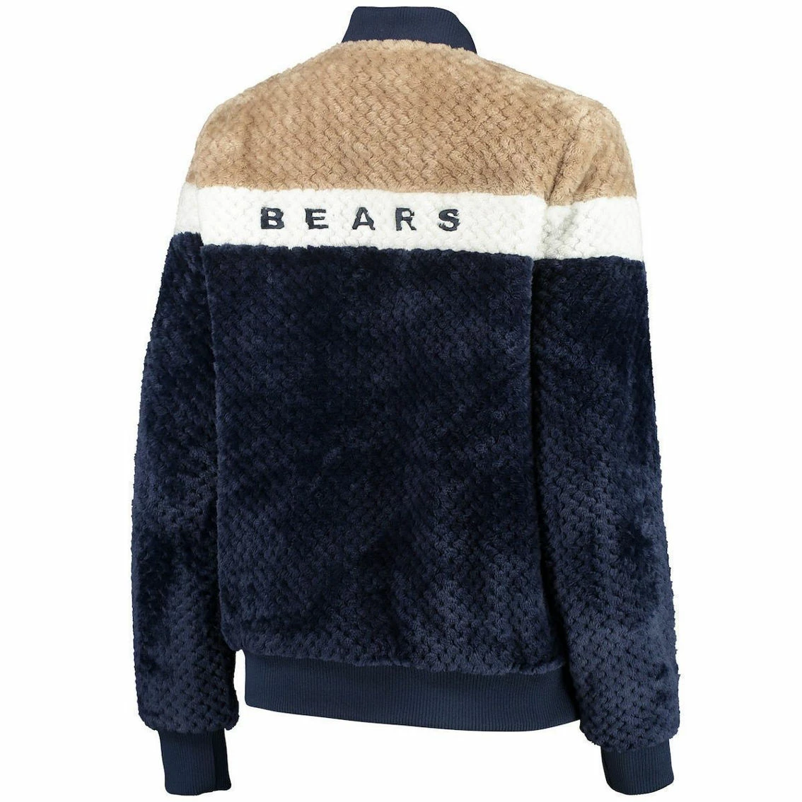 - When the weather turns cold, keep your Chicago Bears style on point with this Riot Squad full-snap jacket from G-III 4Her by Carl Banks. Along with a locker loop for convenient hanging, this top features stunning embroidered Chicago Bears graphics complemented by the multicolor design for a pop of flair. Plus, its sherpa fabric and quilted lining create extra layers of warmth and softness.
