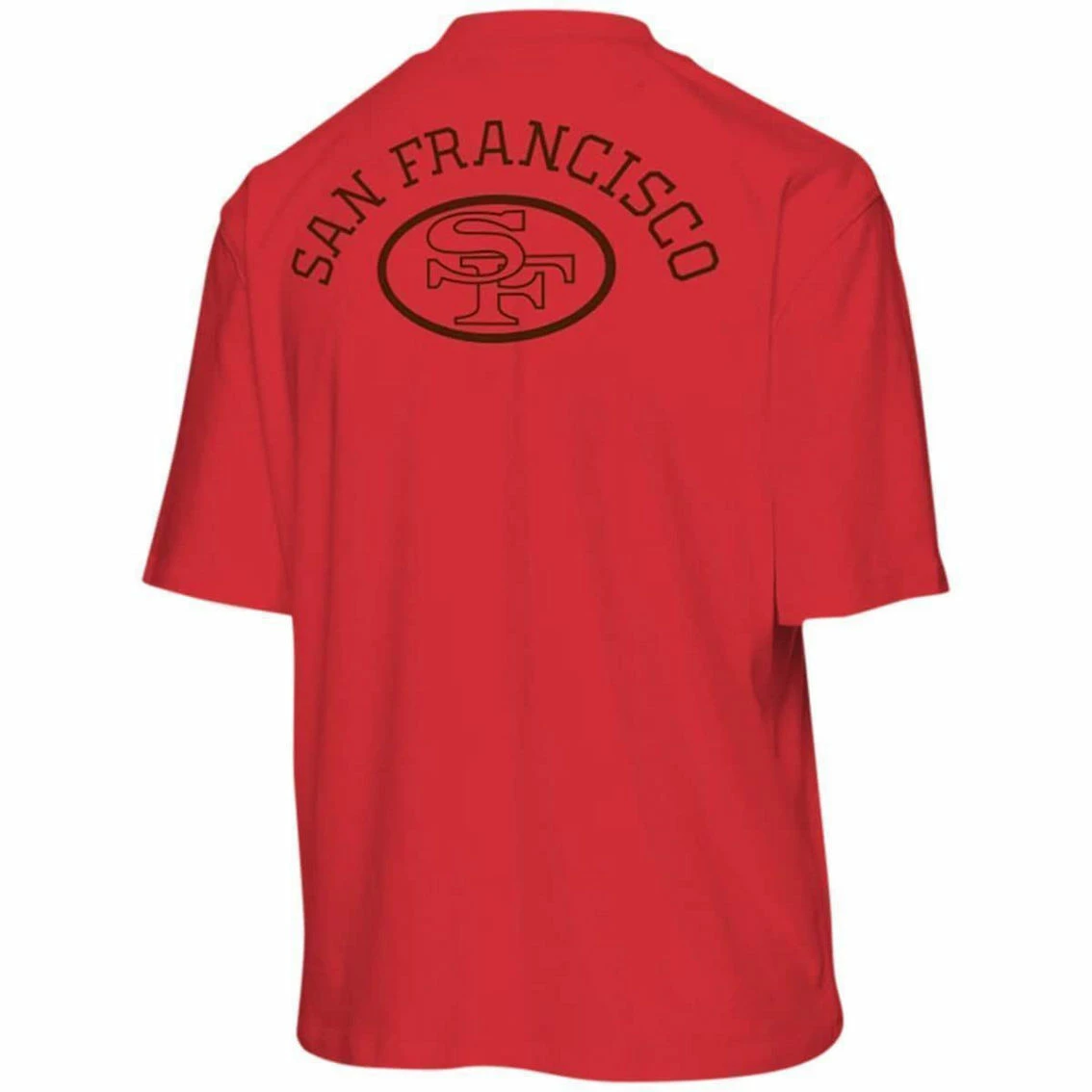 - Add a new laid-back look to your collection of San Francisco 49ers apparel with this T-shirt from Junk Food. It features bold team graphics on the front and back, comfy half sleeves and a mock neck that offers a distinct look. Pair this tee with your favorite hat or other San Francisco 49ers accessory on game day and show how deep your devotion to your favorites runs.