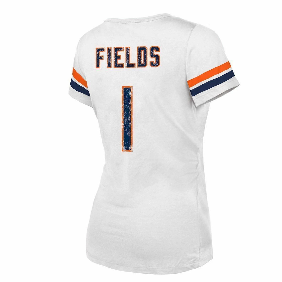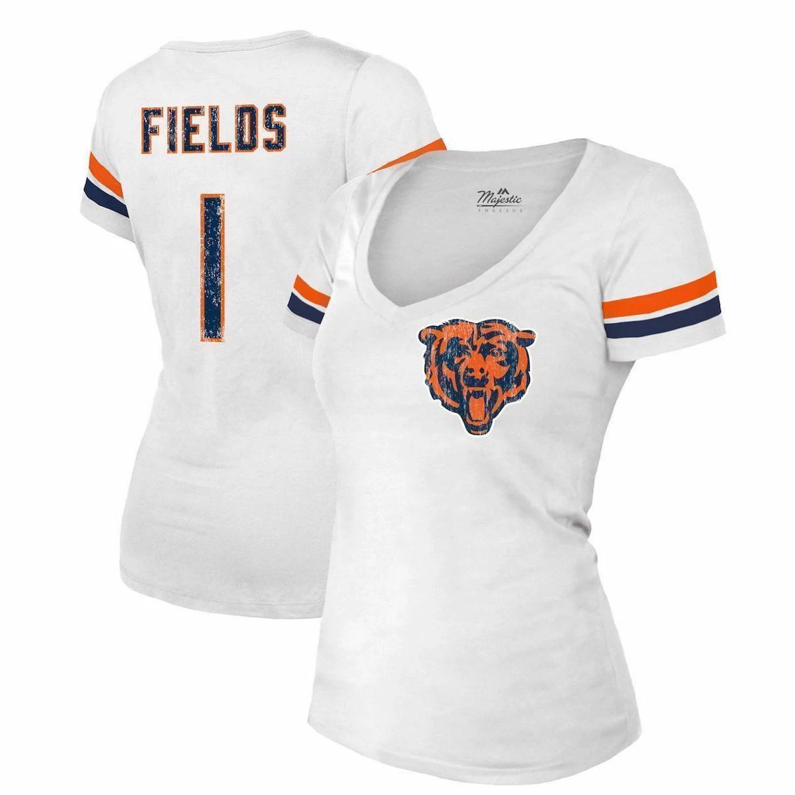 - Let everyone see you’re a tried-and-true Chicago Bears fan by grabbing this Fanatics Branded gear. It’s decked out in detailed Justin Fields graphics so you can show your pride everywhere you go. Anytime you put on this Player Name & Number V-Neck T-Shirt, you can be sure your loyalty is on full display.
