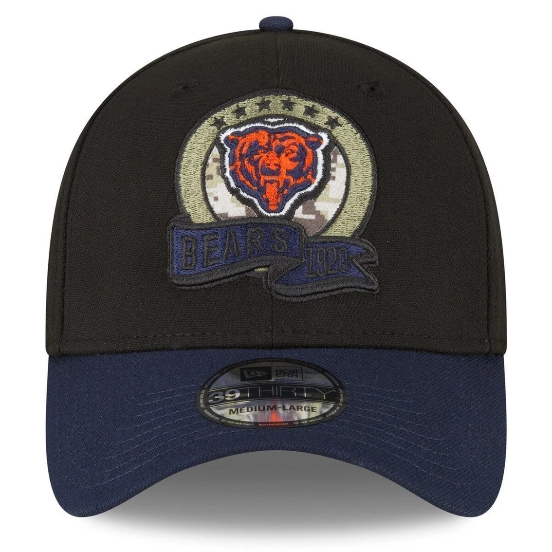 - Honor our service members while supporting the Chicago Bears with this 2022 Salute To Service 39THIRTY Flex Hat. This New Era hat proudly displays an embroidered Chicago Bears logo with camouflage detail behind it, as well as a banner underneath that features the team’s name and year they joined the NFL. The visor has a camouflage pattern underneath, matching the Salute To Service ribbon embroidered on the rear. A woven tag with an American flag adorns the right side of the hat. The NFL does not profit from the sale of Salute to Service products. Charitable contributions are awarded by the NFL Foundation to the NFL’s military nonprofit partners. For more information, please visit www.NFL.com/causes/salute.