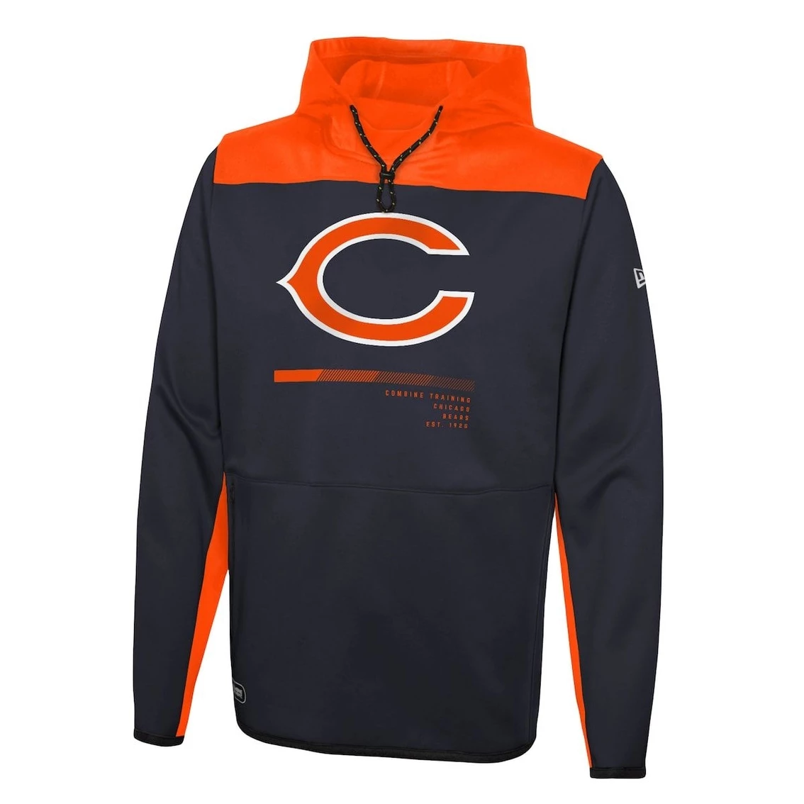 - Let everyone know where your devotion lies while keeping warm in this Chicago Bears Combine Authentic Hard Hitter hoodie from New Era. While the midweight design keeps you toasty, the zippered pocket allows you to securely hold your essentials. Plus, the striking Chicago Bears graphics and bold colorway show off your undeniable team spirit.