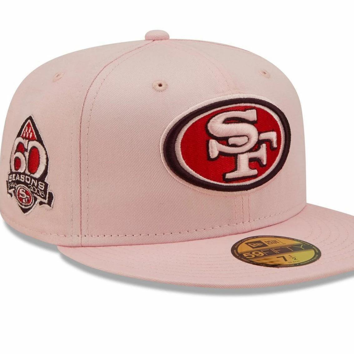 - Stand out in the crowd with this dashing 60 Seasons The Pastels 59FIFTY fitted hat from New Era. It features large, embroidered graphics of the San Francisco 49ers logo to help you share your team spirit with fellow fans. The structured fit preserves the integrity of this stylish San Francisco 49ers cap for years to come.
