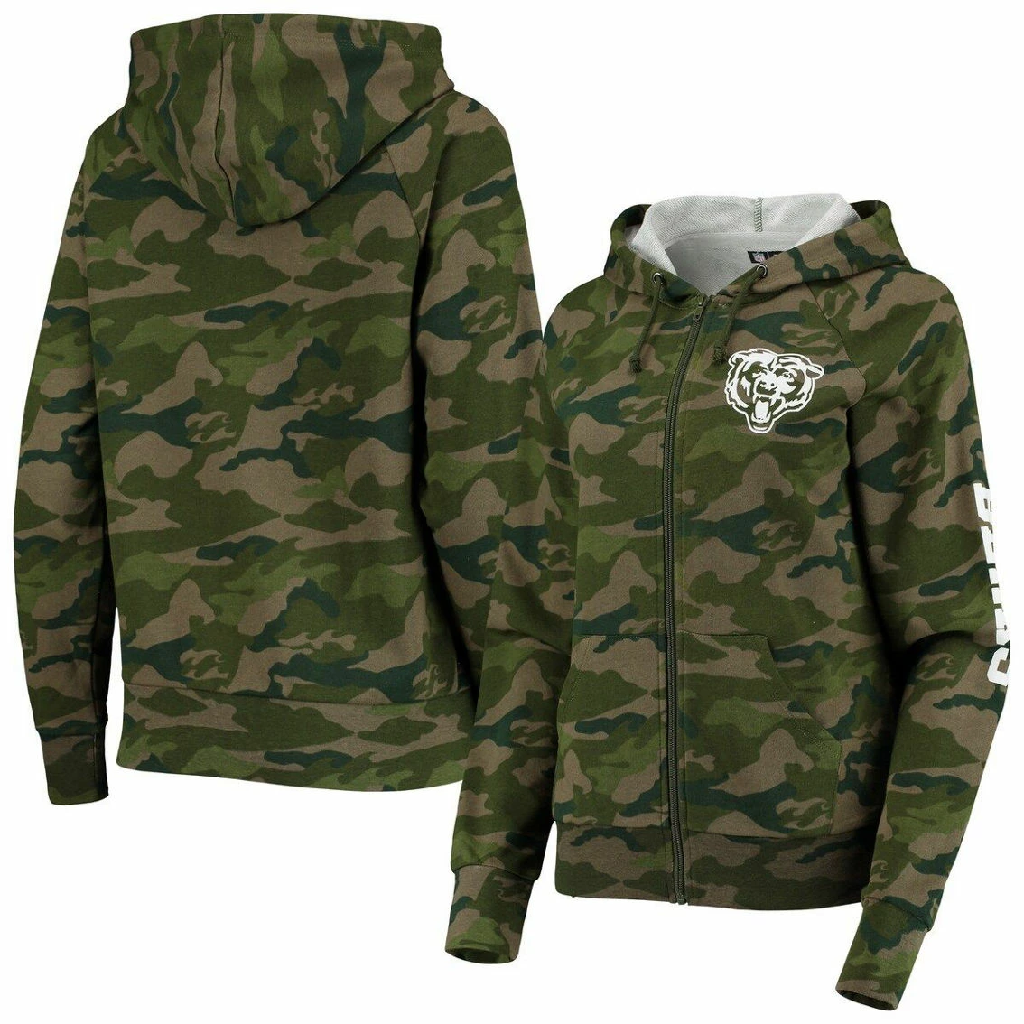 - Merge your outdoor style with your Chicago Bears fandom when you sport this full-zip hoodie from New Era. It features a sublimated camo print all over and Chicago Bears graphics printed on the front and down the left sleeve. The raglan sleeves will also give you more room for layering and flexible movement.