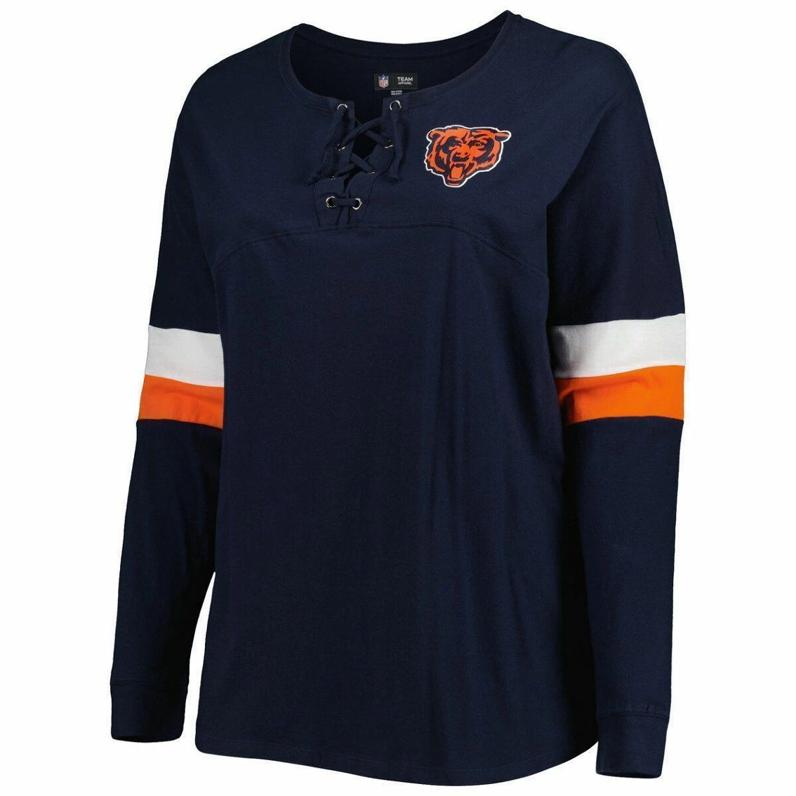 SKU: DSCO1147597484 Category: Chicago Bears Tags: Clothing & Accessories, New Era Women's Navy Chicago Bears Plus Size Athletic Varsity Lace-Up V-Neck Long Sleeve T-Shirt, T-Shirts
