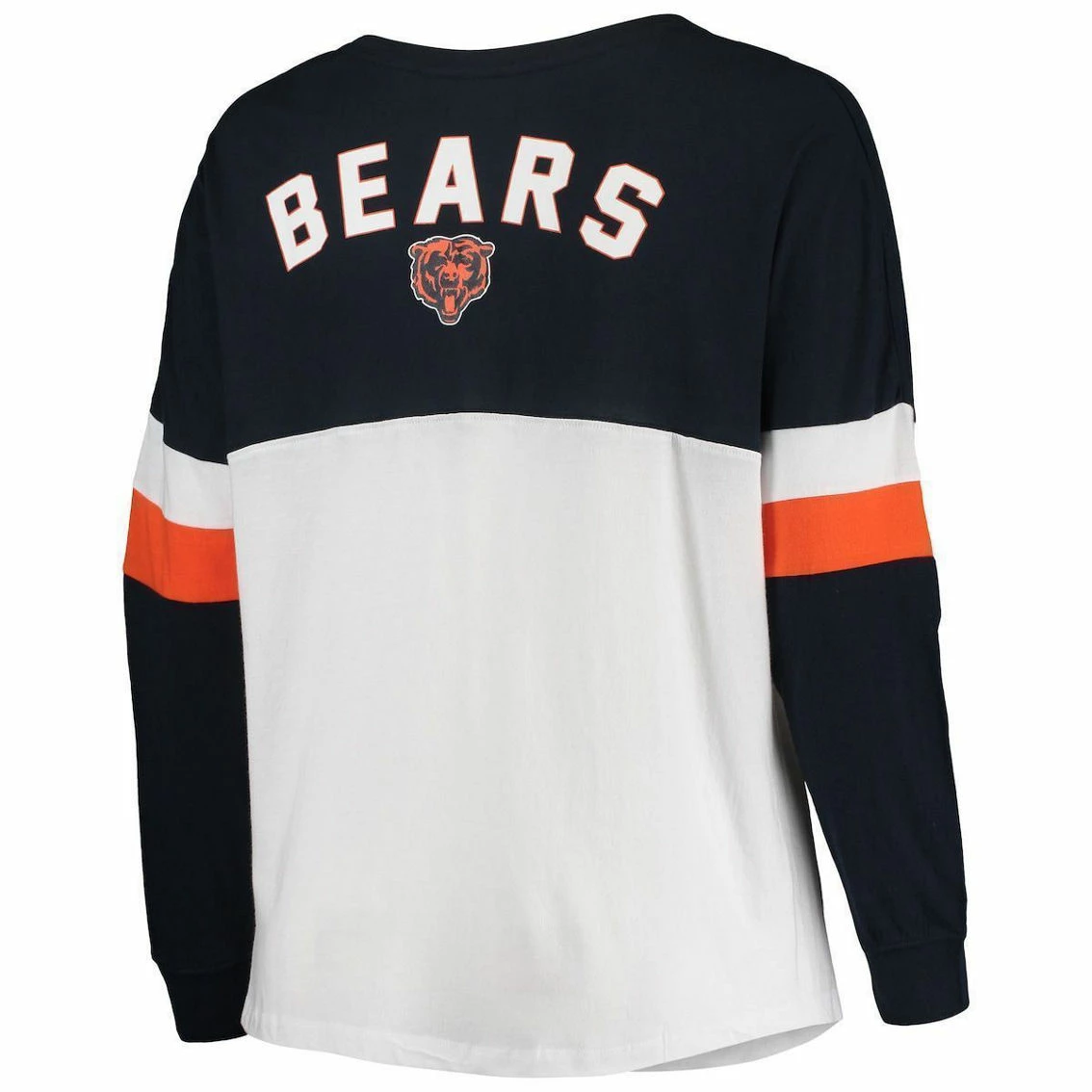 SKU: DSCO1140227398 Category: Chicago Bears Tags: Clothing & Accessories, New Era Women's White/Navy Chicago Bears Plus Size Athletic Varsity Lace-Up V-Neck Long Sleeve T-Shirt, T-Shirts