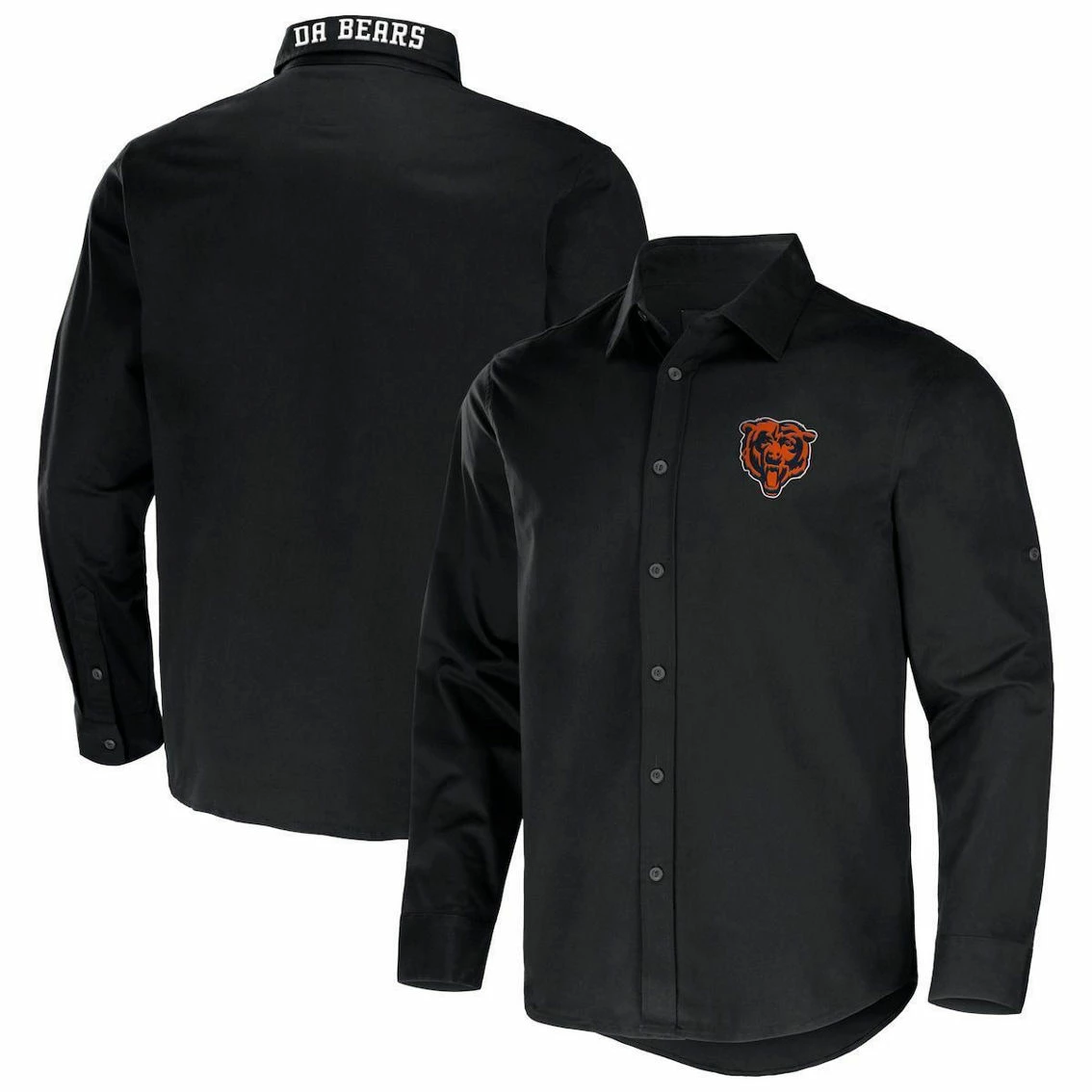 NFL X Darius Rucker Collection By Fanatics Men's Black Chicago Bears Convertible Twill Long Sleeve Button-Up Shirt