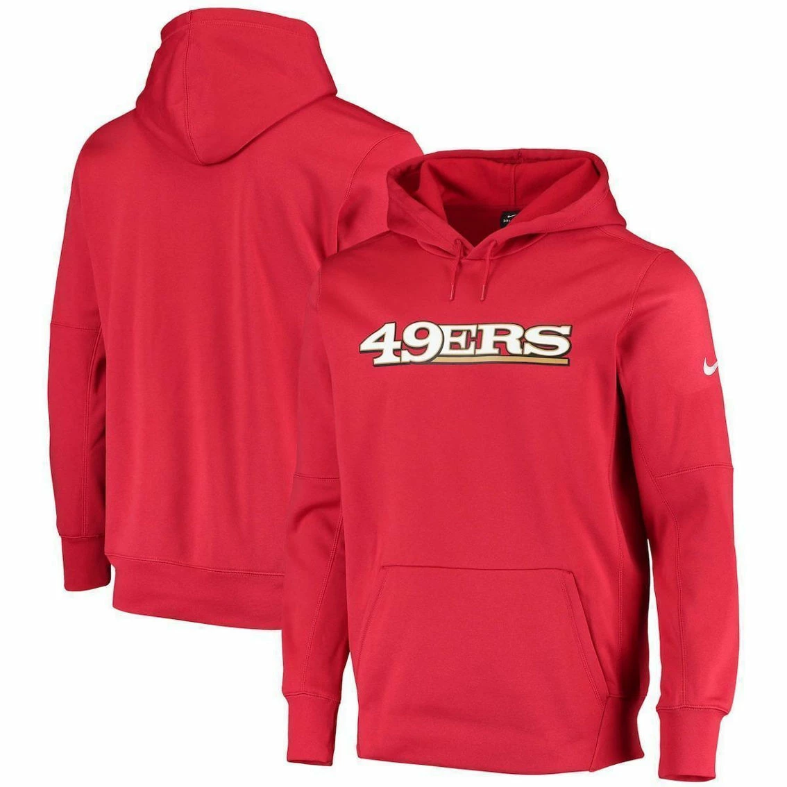 - Tackle chilly temperatures in this San Francisco 49ers Wordmark pullover hoodie from Nike. It features flexible material for better movement and large San Francisco 49ers graphics on the front for all to see. Plus, Nike Therma fabric helps harness your own body’s warmth, while Dri-FIT technology wicks away moisture for all-around comfort.