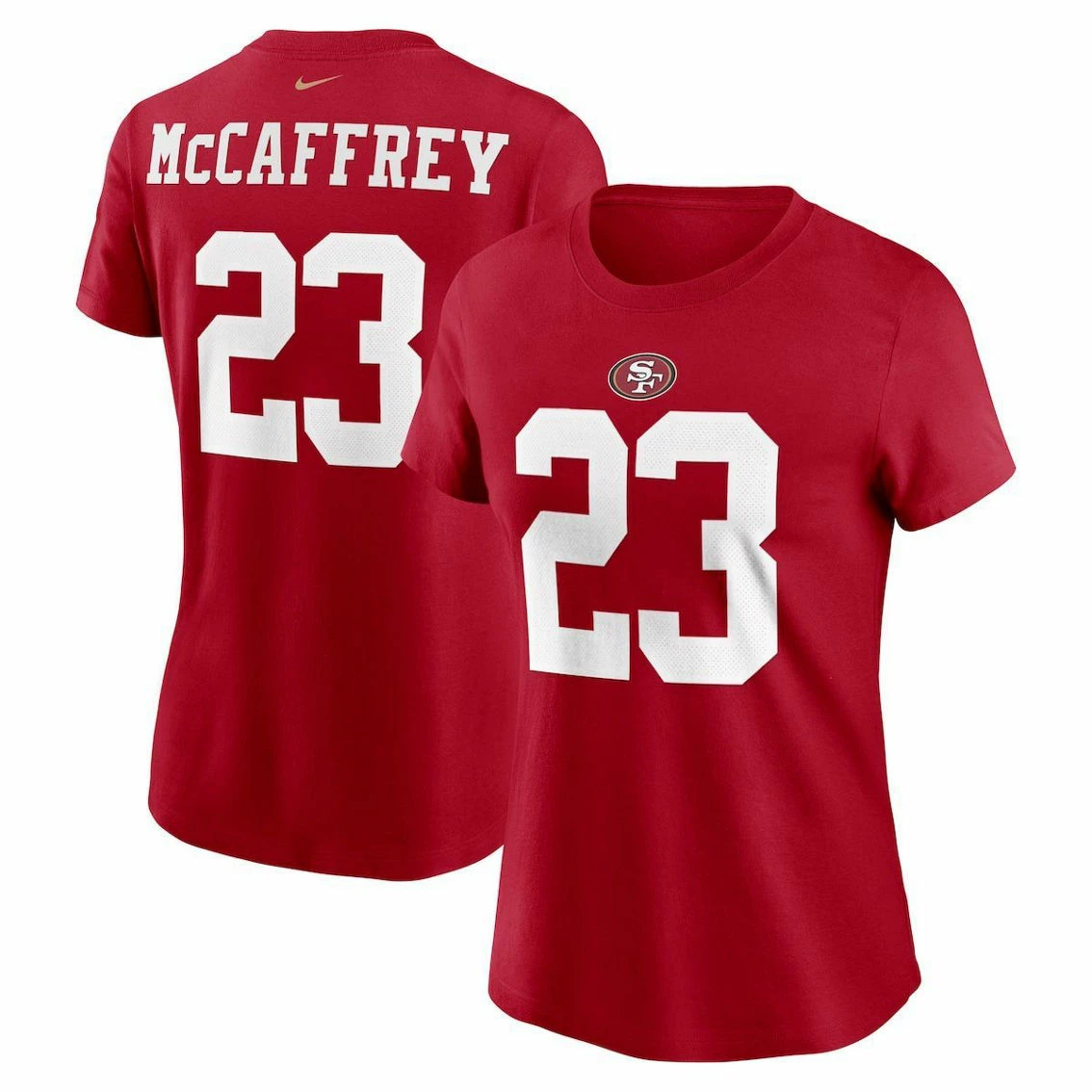 Nike Women's Christian McCaffrey Scarlet San Francisco 49ers Player Name & Number T-Shirt