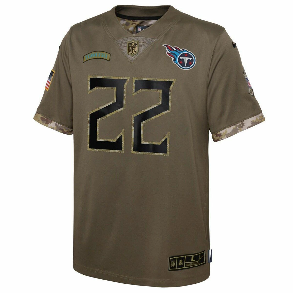 - Your young fan can honor our service members while supporting the Tennessee Titans with this 2022 Salute To Service Derrick Henry Player Limited Jersey. This Nike gear features a military-inspired color scheme, complete with an American flag and Salute To Service ribbon appliqu on the right sleeve. The crisp Tennessee Titans graphics and camouflage details will add some much-needed spirit to your game day collection. The NFL does not profit from the sale of Salute to Service products. Charitable contributions are awarded by the NFL Foundation to the NFL’s military nonprofit partners. For more information, please visit www.NFL.com/causes/salute.