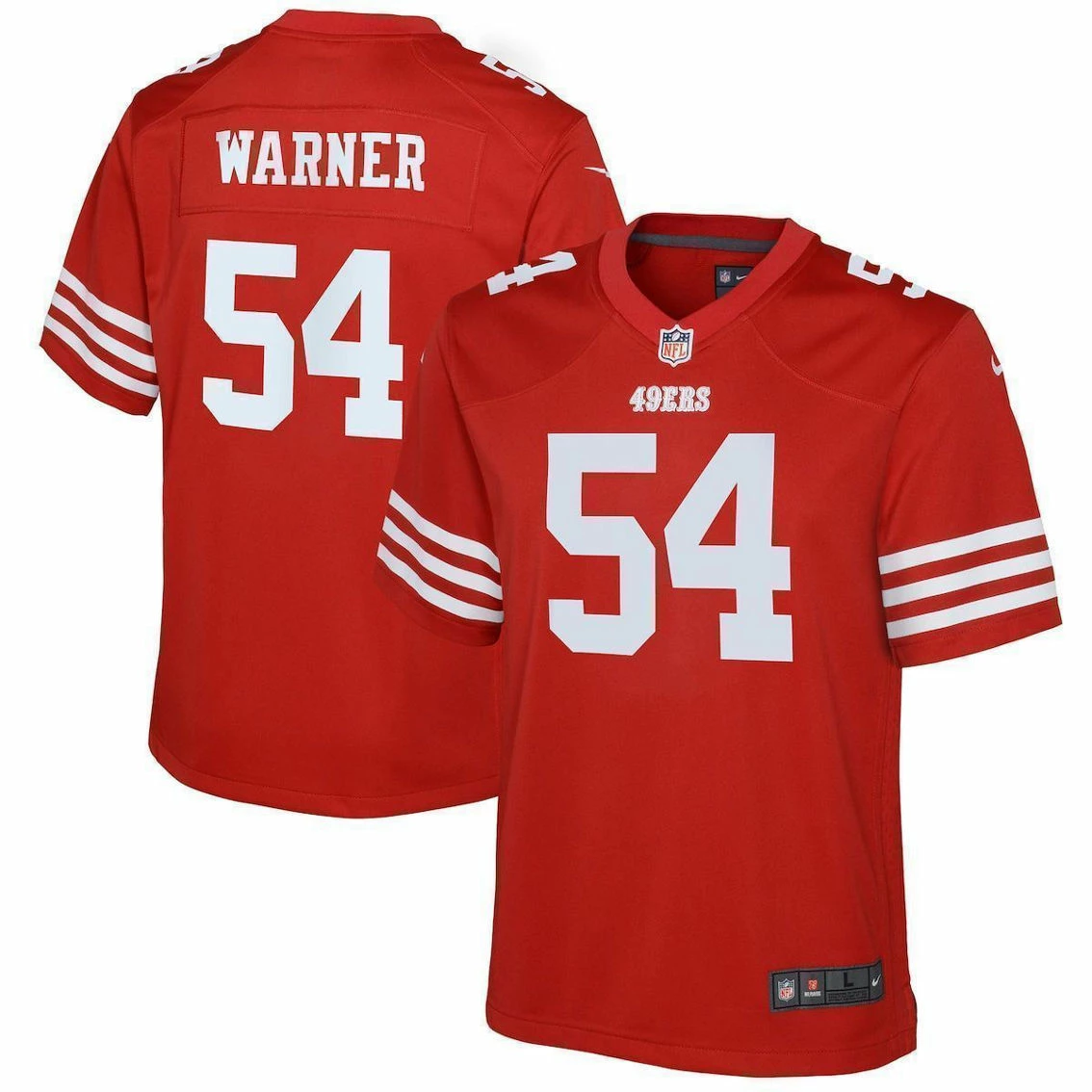 - Your young fan will capture their team’s identity in a fresh and innovative way when they wear this San Francisco 49ers Fred Warner Game Jersey from Nike. It features San Francisco 49ers graphics to show who they support. Before they head to the next San Francisco 49ers game, make sure your youngster has this incredible jersey so that everyone knows who they’re backing.