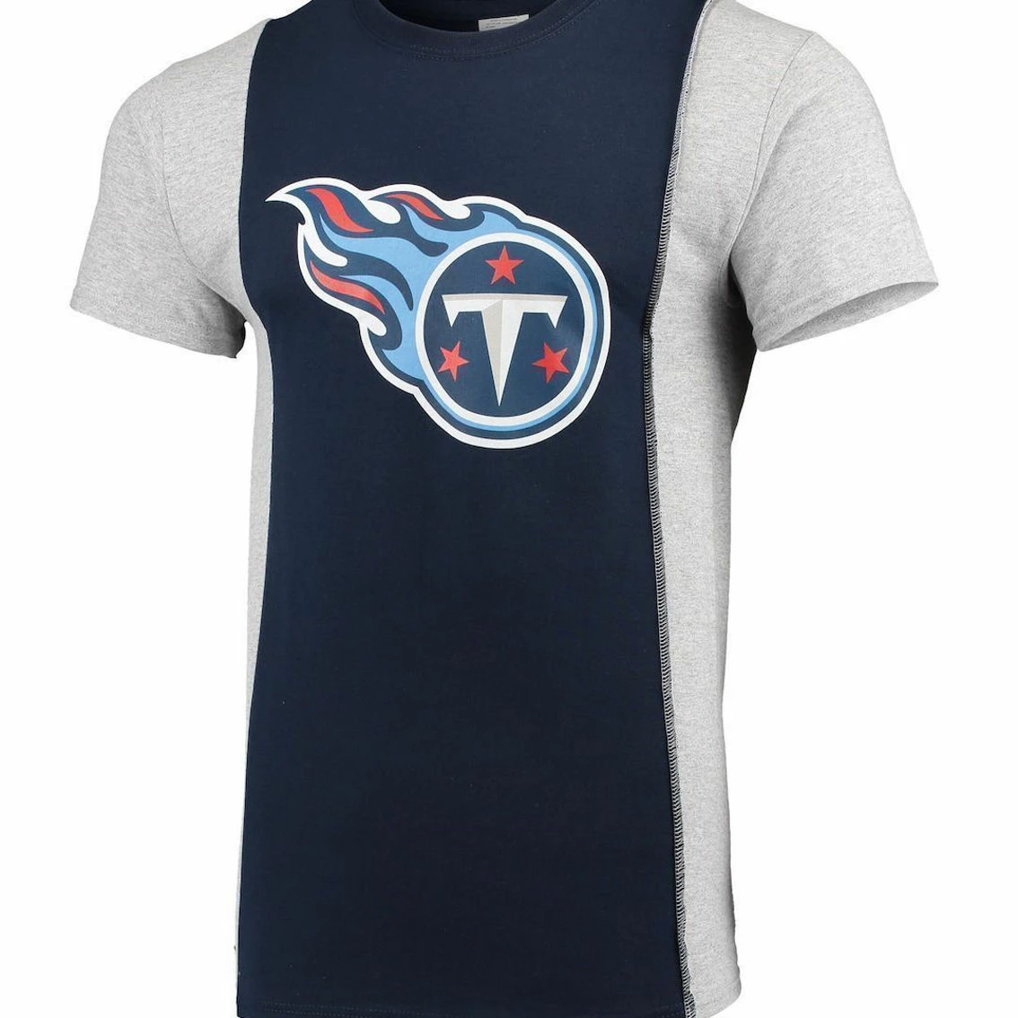 - The Tennessee Titans are looking to reach the NFL mountaintop, and you’re ready to cheer them on every step of the way. Show your Tennessee Titans pride all season long in this Refried Apparel Upcycled Split T-shirt. Its multi-panel design boldly displays your favorite team’s colors and logo, so everyone will know you’re a fan for the long haul.