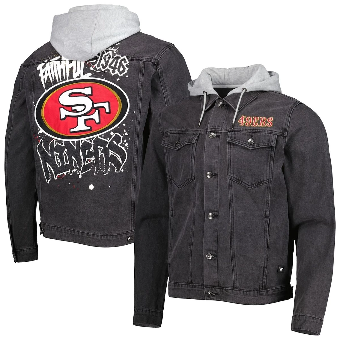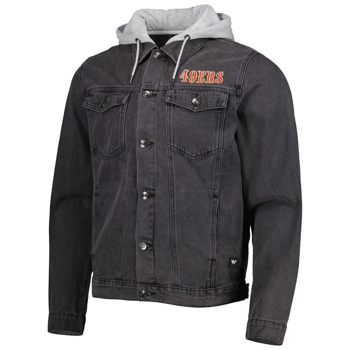 The Wild Collective Men's Black San Francisco 49ers Hooded Full-Button Denim Jacket
