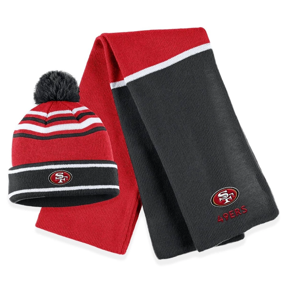 - Get warm in San Francisco 49ers style with this cuffed knit hat and scarf set from WEAR by Erin Andrews. It features embroidered team graphics and a bold two-tone design. Whether going to the stadium or enjoying a cold day outdoors, proudly rep the San Francisco 49ers with this set.